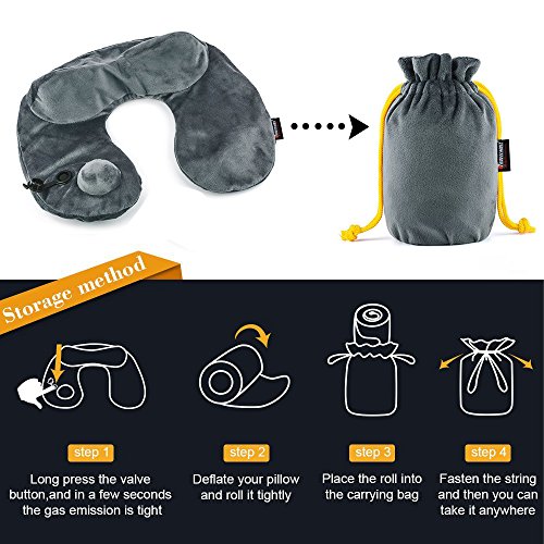Cuscino da viaggio, cuscino gonfiabile portatile, cuscino per collo, cuscino per pisolini, per aerei, auto, autobus, treni, ufficio, campeggio (grigio scuro)
