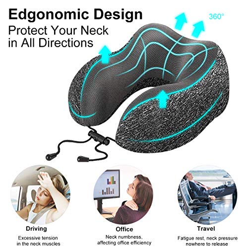 ✈ Cura del collo a forma di U: In forma la colonna cervicale, migliorare l'effetto di supporto, Alleviare l'affaticamento della spalla e del collo, che può assorbire efficacemente la pressione del collo per prevenire la tensione muscolare, e sostiene il collo senza il scomodo posizionamento e disagio. Viene fornito con maschere per gli occhi e tappi per le orecchie per un sonno più confortevole.