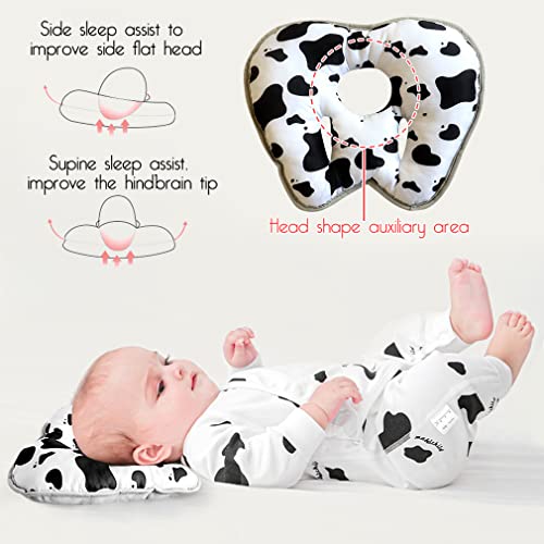 Cuscino da viaggio per passeggino o letto, 2 in 1, per passeggino e carrozzina, con testa morbida, regolabile, per bambini da 6 mesi a 2 anni (mucca)
