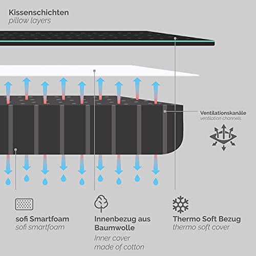 Sofi Cuscino da viaggio - Cuscino di supporto per il collo per la colonna vertebrale cervicale - Piccolo cuscino ortopedico per viaggiare in auto, in aereo e in hotel - Copertura termoregolante - Nero