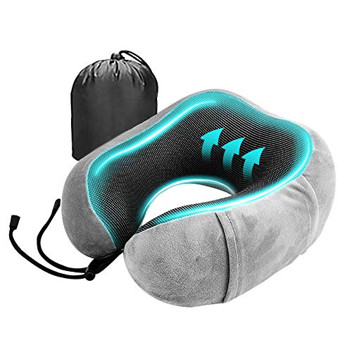 Cuscino da viaggio, Vemingo cuscino per collo in memory foam con rivestimento lavabile e cuscino di supporto per collo a U per viaggi, casa e ufficio (grigio))