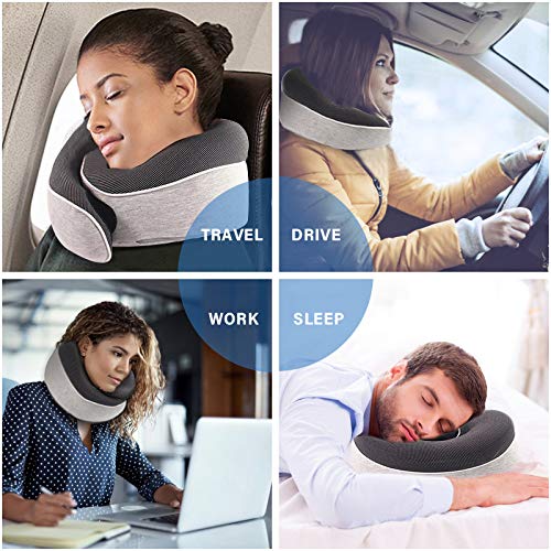 Cuscino da viaggio,Vemingo Cuscino da collo in schiuma di memoria pura al 100%, cuscino da viaggio per aereo contro della polvere, traspirante, lavabile, per viaggi, casa e ufficio (grigio)