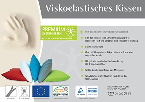 Cuscino da viaggio Wiebke 30 x 50 cm - viscoelastico, con custodia, Colori assortiti, Microfibra, turchese, 30 x 50 cm