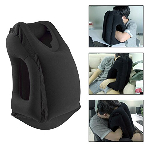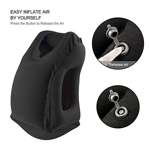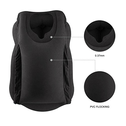 Cuscino di viaggio, CUSCINO WOWGO e un cuscino per il sonno cuscino pneumatico gonfiabile pneumatico per Aerei, treni, automobili, autobus, ufficio, campeggio (Nero)