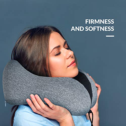 Cuscino viscoelastico cervicale per viaggi in aereo, automobile, autobus o treno realizzato in Soft Memory Foam | Kit da viaggio: comodo cuscino per il collo, con fodera lavabile, tappi per le orecchi
