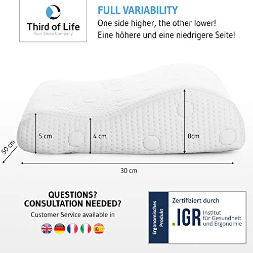 Cuscino viscoelastico NINAR doppia onda | cuscino cervicale ortopedico | Memory viscoelastico con federa termoregolante | Indicato per bambini e per utenti di materassi ad acqua | 50 x 30 x 8/5 cm