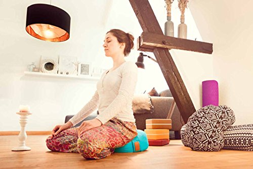 MATERIALE E CURA: Il rivestimento è composto da 100% cotone. La fodera è sfoderabile tramite zip e lavabile. Il materiale interno è costituito da imbottitura (100% cotone) e leggera pula di farro bio (coltivaz. biolog. controllata) austriaca. La pula di farro utilizzata viene esclusivamente da agricoltura specializzata in prodotti biologici. Ottieni così un cuscino yoga dal design trendy e un prodotto naturale di alta qualità che