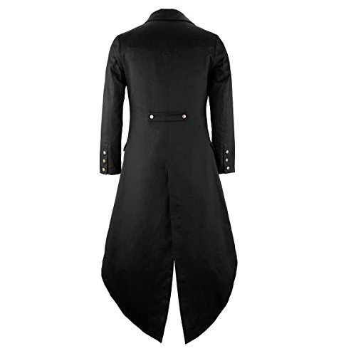 Cusfull Cappotto Redingote Giacca a Maniche Lunghe da Uomo Steampunk Gotico Cappotto Giacca a Tailcoat Nero per Costume di Halloween, Carnevale (XL, Pulsante d'oro)