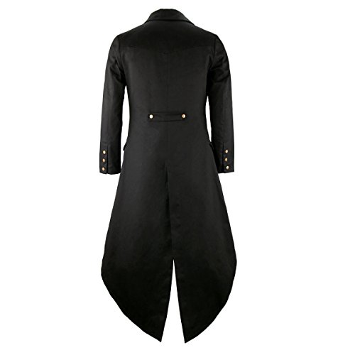 Cusfull Giacca Uomo Lunga Nero Gotico Steampunk VTG Cappotto Lungo Multi-tasca Tailcoat Cappotto per Costume Vittoriano Halloween Costume