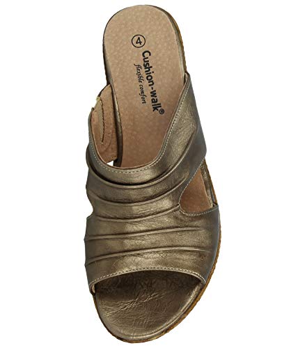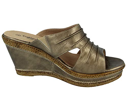 Cushion Walk - Sandali infradito da donna, foderati in pelle, con zeppa centrale, numeri dal 36 al 41, Argento (peltro), 39 EU