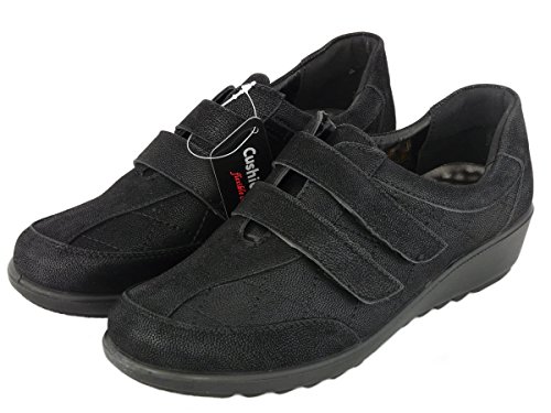 Cushion Walk Scarpe da Donna Basse Senza Lacci, Pelletteria e Similari, Leggero con Sottopiede Imbottito - con Chiusura Lampo o Chiusura a Strappo (EU 42 UK 8, Nero Chiusura a Strappo)