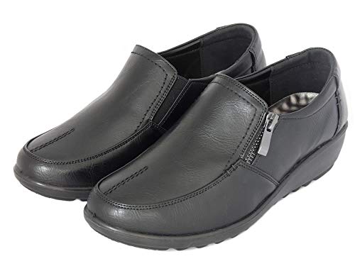 Cushion Walk Scarpe Donna Nero Mocassino EEE Calzata Extra Larga, in Ecopelle con Cerniera - Plateau Basso, Scarpe Basse, Scarpe Casual da Lavoro per Ufficio (41 EU, Nero)