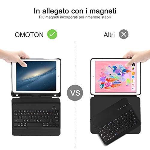 Custodia ipad 9.7 2018/2017 con tastiera, tastiera Italiana Bluetooth staccabile per Apple iPad Air 1(A1474 A1475 A1476) iPad 2017(A1822,A1823),Nero