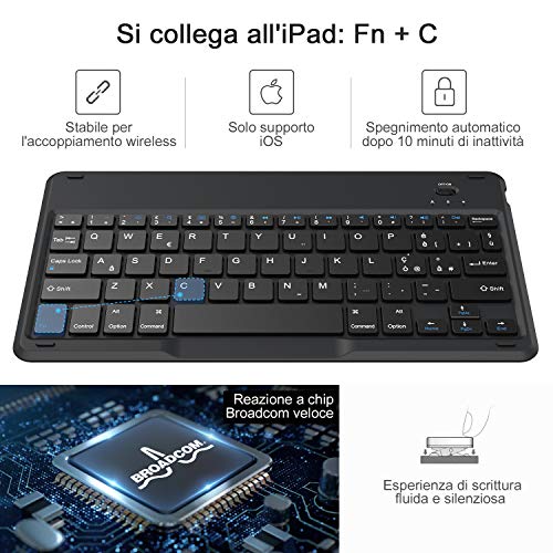 【Protezione completa per il tuo iPad】: la custodia è realizzata in materiale ABS e PU di alta qualità, leggero ma resistente., puoi proteggere completamente lo schermo. Il design ultraportatile della custodia per tastiera e il look elegante si adattano a qualsiasi occasione.