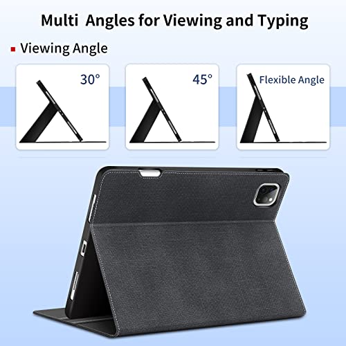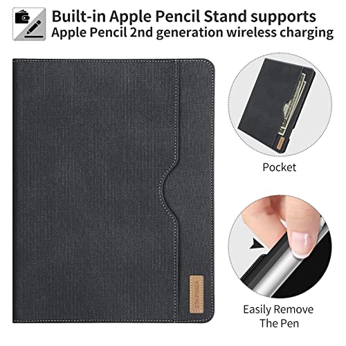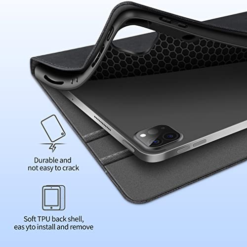 Custodia per iPad Pro 12.9 2021/2020/2018 (5 a/ 4a / 3a Gen) con portapenne, supporto in pelle, denim, supporto per sospensione/riattivazione automatica, ricarica wireless Custodia