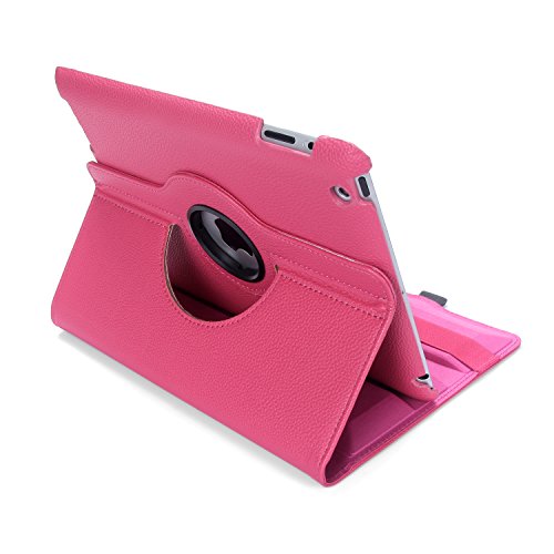 Custodia per iPad 2/3/4, RC copertina con Rotazione a 360 gradi Custodia in Pelle PU per Apple iPad 2 3 4 con Smart Cover (Fucsia)