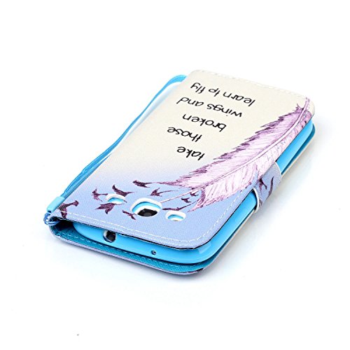 Custodia S3 Neo 4.8", Aeeque per Samsung Galaxy S3/S3 Neo Cover in Pelle PU Shock-Absorption Protettiva Portafoglio Cover Rigida Piume e Uccelli Modello con Ultra Sottile TPU Interno e Porta Carte di Credito