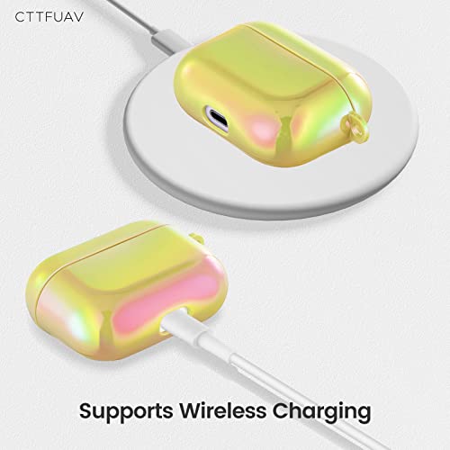 Custodia per Airpods Pro, Custodia Protettiva Iridescent per ipod Pro Rigida Carina Compatibile con Airpods Pro Con Moschettone Portachiavi in Metallo per donne uomini ragazze ragazzi (Giallo)