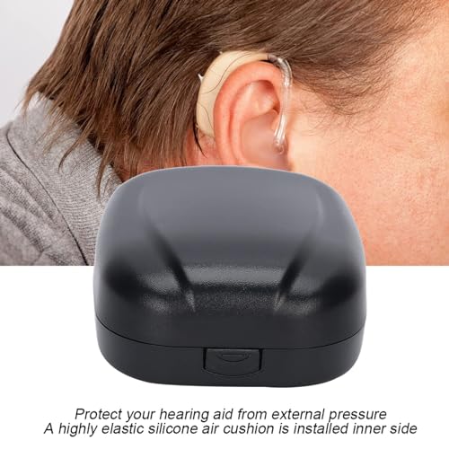 Custodia per apparecchi acustici, scatola di immagazzinaggio resistente alle cadute impermeabile Scatola protettiva portatile per la conservazione di apparecchi acustici(Nero)