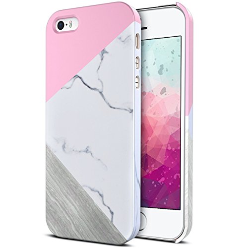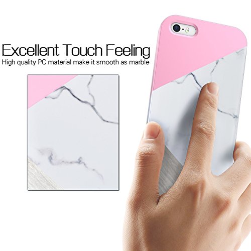 Custodia per Apple iPhone 5/5S/SE, GrandEver Marmo Modello Design AntiGraffio Antiurto Ultra Sottile Bumper Cover Protettiva Hard Back Case - Rosa Bianco Grigio
