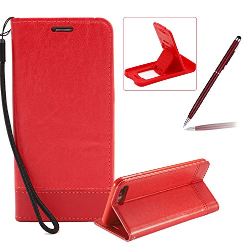 Custodia Apple iPhone 7 4.7" Cover,Herzzer Creativo Elegante Magnetica adsorbimento PU cuoio Dual-Sided Agganciabile Magneticamente in Pelle Bella Premium Quality Leather Design Book Wallet Cuoio style Shell,Pieghevole chiusura ripiegabile Flip Stand Ultra Sottile slim Libro Portafoglio Carte Slot Credito Protettiva Portatile chiusura ventosa bumper Caso per iPhone 7 4.7" - Rosso + 1 x Kickstand rosso + 1 x Stylus Touch Pen Claret-rosso