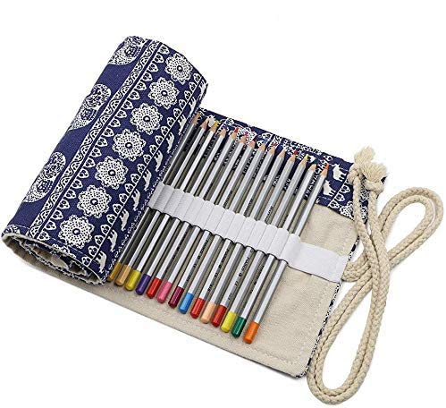 Custodia per Avvolgere la Matita di Tela,72 slot per Portamatite arrorolabile tela portamatite pratica da matita di colore con legante pagina per organizattore materiale scolastico(Elephant)