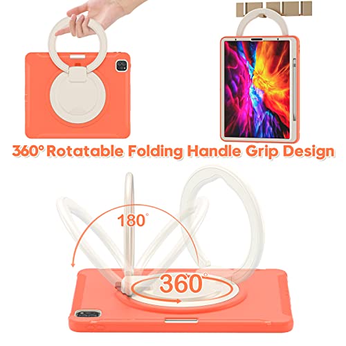 Custodia per iPad Pro 12.9 per bambini di 4a/3a generazione (2020/2018) con portamatite, manico con supporto girevole, custodia protettiva antiurto resistente per iPad Pro da 12,9 pollici, arancione