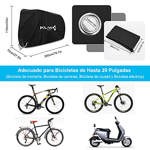 Klas Remo - Custodia per bicicletta impermeabile, 210D, con foro di bloccaggio, per bicicletta da strada, moto, 200 x 70 x 110 cm, colore: nero