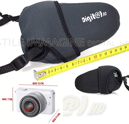 CUSTODIA BORSA FOTOCAMERA SMALL IN NEOPRENE GRIGIA NERA DOUBLEFACE MEDIUM BAG COMPATIBILE con NIKON CANON PENTAX SONY ETC.