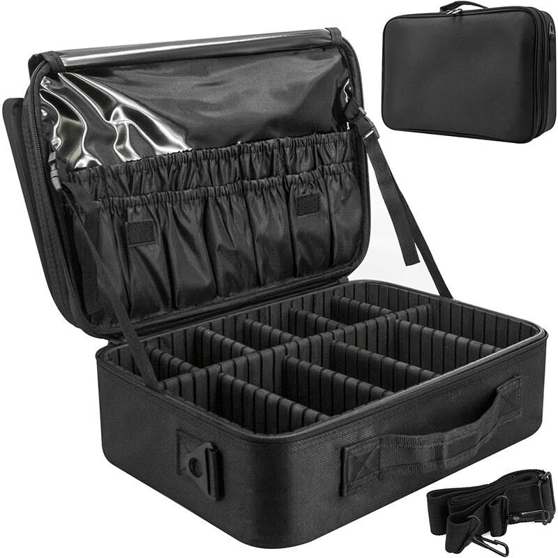 La borsa cosmetica da viaggio in tessuto è realizzata con materiali in tessuto Oxford 1680D di qualità con fodera in nylon, custodia in schiuma rigida impermeabile e resistente all'usura, che protegge i tuoi cosmetici da fuoriuscite, urti e impatti durante il trasporto Grande capacità, dimensioni totali della custodia per cosmetici circa 37 x 27 x 13 centimetri, peso circa 1,4 chilogrammi, abbastanza grande da contenere trucco, cosmetici per la cura della pelle, articoli da toeletta vari, articoli da toeletta, necessità quotidiane, elettronica e accessori da viaggio Facile da trasportare, molteplici modi per trasportare la borsa, dal manico corto come una valigetta, da indossare sulla schiena come zaino o come borsa a tracolla, puoi anche infilare la manica sul retro della borsa sopra i manici di una borsa con ruote 3 strati, la copertura dello strato ha una grande tasca con patta e un grande sacco per riporre gli oggetti. Chiusura laterale con cerniera, lo strato intermedio ha