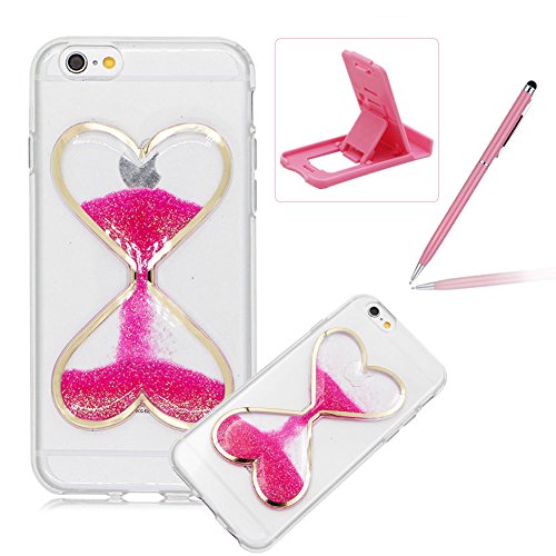 Custodia Bumper per iPhone 5S/SE Case cover,Herzzer mode Liquido trasparente design Coquille 3D protezione Dual Layer Shell Liquid,amore cuore love Rose Red Clessidra Unico Molto sottile Modeling Clessidra Snella Silicone TPU Gel flessibile Anti shock Caso per iPhone 5S/SE + 1 x Gratuito Basamento Telefono Rosa Regolabile + 1 x Gratuito Pennino Rosa