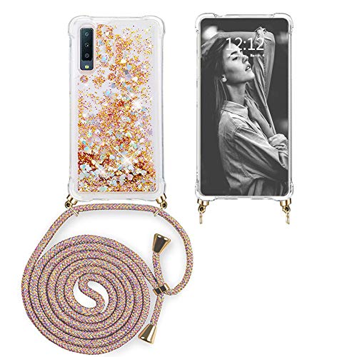 Ptny Case Custodia per Cellulare Girocollo per Samsung Galaxy A7 2018 Cover Tracolla - Back Trasparentecon Custodia in Silicone Collana/Necklace con Cordoncino Smartphone Collana, Colore Arcobaleno