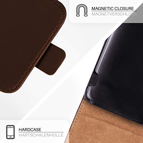 MoEx Custodia per Cellulare Premium + Pellicola Protettiva Compatibile con HTC One M7 | Custodia a Patta + Pellicola per Cellulare, Marrone Scuro