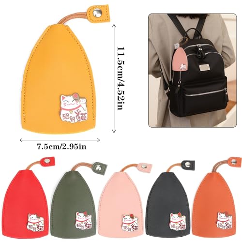Custodia per Chiave per Auto in Pelle, 6 Pezzi Portachiavi per Auto,Portatile Push-pull Cover Chiave Auto,Borsa per Chiavi Manicotto Chiave Di Grande Capacità Per Tenere Da 5 A 8 Chiavi(Gatto)