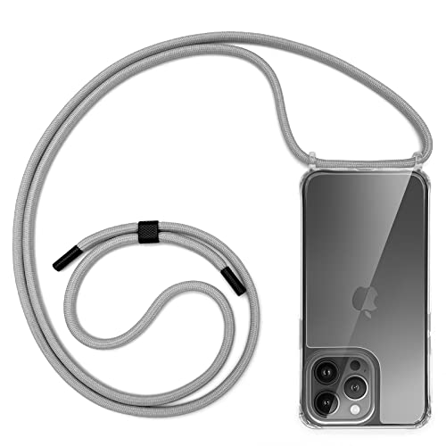 Custodia con cinturino per iPhone 13 Pro 6,1", trasparente, con cordino rimovibile (grigio chiaro)