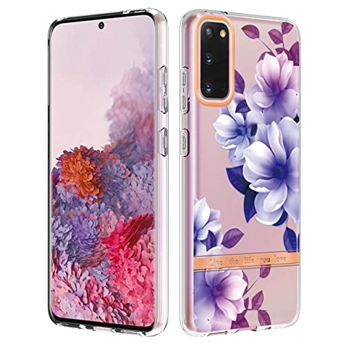 YKTO Custodia Clear Silicone per Samsung Galaxy S20 Cover Floral Series Custodia TPU Robusta Bumper Case Antiurto Anti-Graffio Hybrid Protettiva Cover per Galaxy S20-Grande Fiore Viola