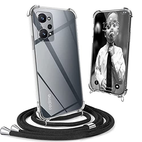 Mkej Custodia con Collana per Realme GT Neo 2, Cover Trasparente con Cordino, Case con Laccio Tracolla [Antiurto] [AntiGraffio] TPU Cover con Collana per Realme GT Neo 2 - Nero