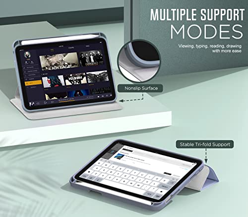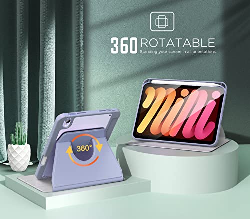 MoKo Custodia compatibile con iPad Mini 6ª generazione 8.3 2021, custodia di protezione girevole a 360° con porta matita e auto sveglia/standby supporto per la ricarica di Apple Pencil 2, grigio viola