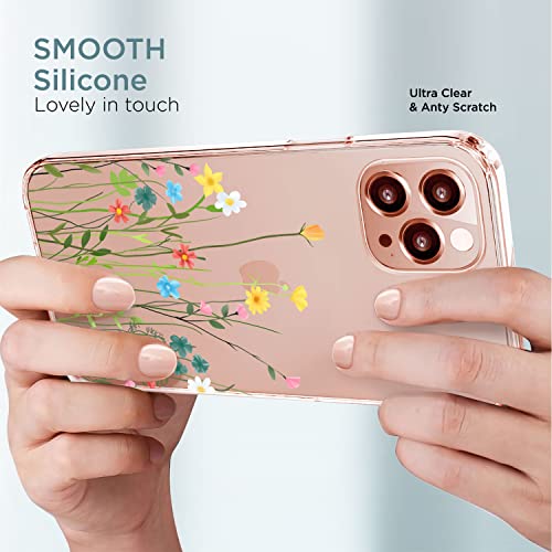 QULT Custodia Compatibile Huawei P30 Lite Cover Trasparente con Disegni Silicone Sottile Morbida TPU Ultra Flessibile Bumper con Motivo Prato di fiori