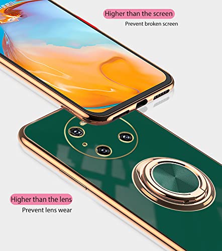Custodia compatibile con Huawei Mate 40 Pro sottile, in TPU, con anello a 360 gradi e supporto magnetico per auto, nero (verde scuro, Huawei Mate 40 Pro)
