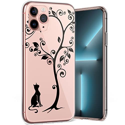 QULT Custodia Compatibile iPhone 11 Pro Cover Trasparente con Disegni Silicone Sottile Morbida TPU Ultra Flessibile Bumper con Motivo Gatto nero