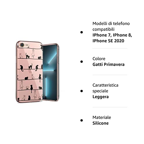 QULT Custodia Compatibile iPhone 7 / iPhone 8 / SE 2020 Cover Trasparente con Disegni Silicone Sottile Morbida TPU Ultra Flessibile Bumper con Motivo Gatti Primavera