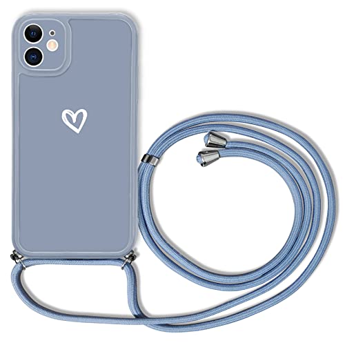 Jusy Custodia compatibile con iPhone 11, in morbido silicone, ultra sottile, a forma di cuore, con catenella, compatibile con iPhone (blu)