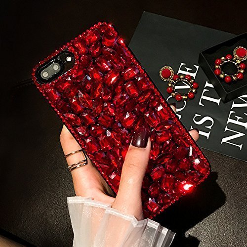 Custodia Compatibile con iPhone 7 Plus/iPhone 8 Plus Bling Diamante Crystal Rhinestone 3D Ultra Sottile Custodia per Ragazza Glitter Clear Silicone con Anti-Scratch Case.Rosso