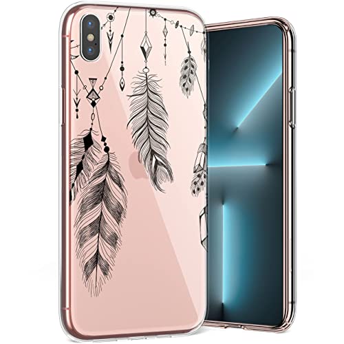 QULT Custodia Compatibile iPhone X/iPhone XS Cover Trasparente con Disegni Silicone Sottile Morbida TPU Ultra Flessibile Bumper con Motivo Piuma