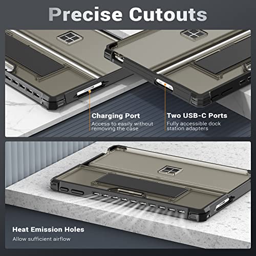 【ESPERIENZA DI LAVORO CONFORTEVOLE】 - Il canale integrato permette di collegare direttamente con la tastiera di Microsoft Surface Pro 9 type cover, il dispositivo può essere utilizzato senza rimuovere la custodia. Un ritaglio posteriore riservato consente agli utenti di regolare liberamente il supporto del tablet Microsoft Surface Pro 9 per trovare il miglior angolo di visualizzazione, angolo di scrittura o angolo di digitazione. (tastiera non inclusa).