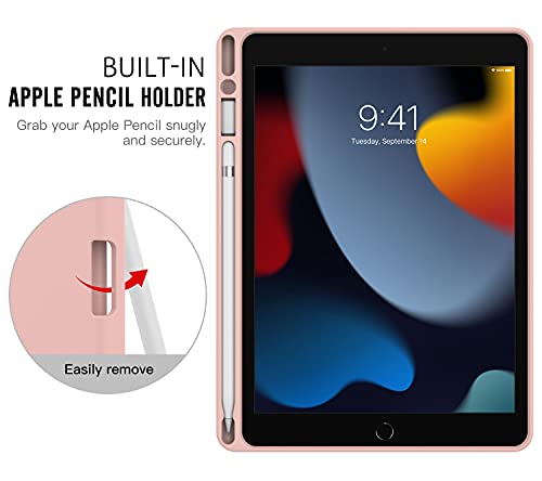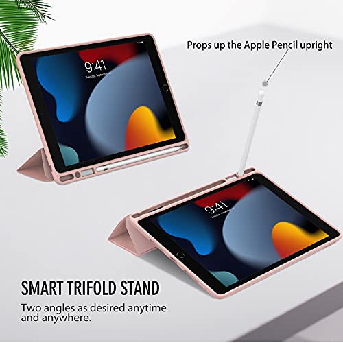 MoKo Custodia Compatibile con Nuovo iPad 10.2" con Portapenna, Protettiva Ultra Sottile per iPad 9a Gen 2021 / 8a Gen 2020 / 7a Gen 2019, Supporta Funzione Auto Sveglia/Sonno - Oro Rosa