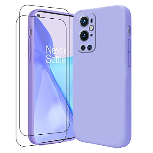 Custodia compatibile con OnePlus 9 Pro Cover in silicone liquido con 2 vetro temperato, custodia protettiva OnePlus 9 Pro Case morbida sottile per cellulare rosa (Lila, OnePlus 9 Pro)