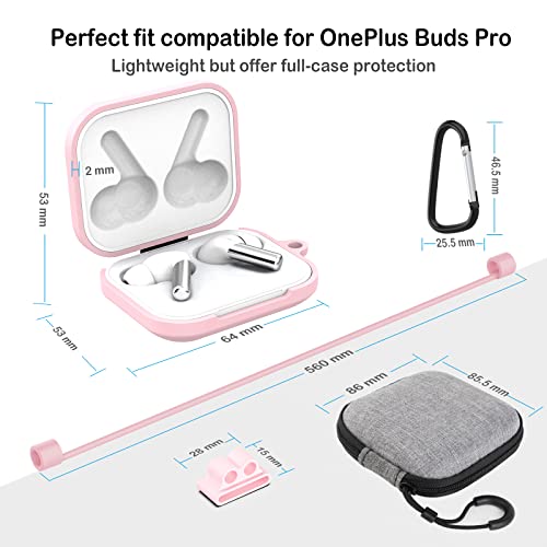 Custodia Compatibile per OnePlus Buds Pro, GeeRic 5PCS Accessori Kit Case Protective Silicone Impermeabile Auricolari Cover Compatibile per OnePlus Buds Pro con Mini Borsa Portabile Leggero Nero Rosa