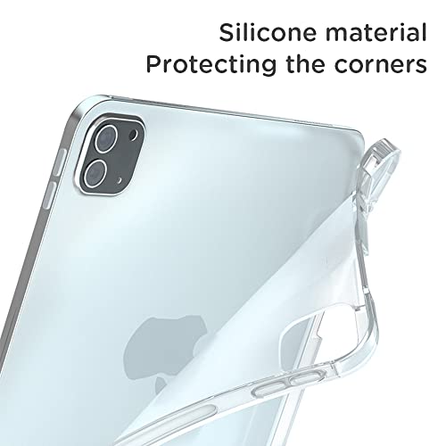 Custodia compatibile con iPad Pro da 11 pollici (2018/2020/2021), tripla cover pieghevole trasparente con sveglia/sonno e portapenne, colore: Argento